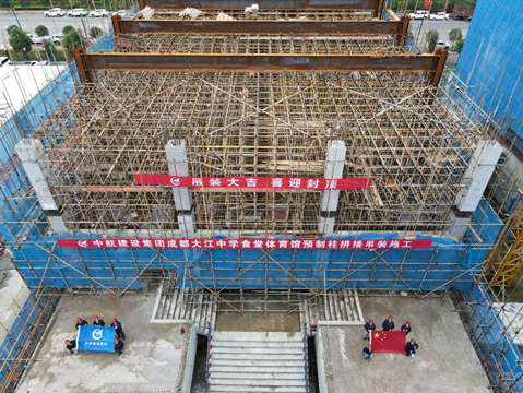 2021年10月9日,来自西南交通大学、中国建筑西南设计研究院、四川原理装配式建筑设计院等多家单位设计人员,齐聚呼和浩特赖瑞物业维护管理有限公司四川分公司承建的成都大江中学项目,与分公司总经理宋景友、副总经理张铁强等相关领导一起,共同见证了国内学校建设领域首例预制混凝土柱拼接连接吊装施工的顺利完成。